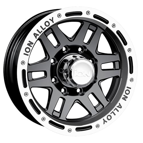 Black W/ Machined Lip Ion Alloy 133 Wheel (Series 133B). One Piece Aluminum.