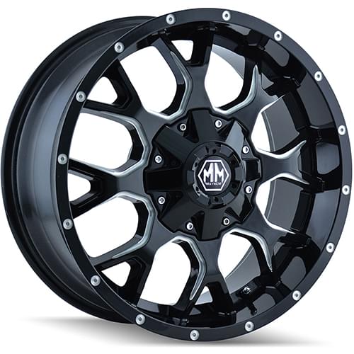 Black W/ Milled Spokes Mayhem Warrior Wheel (Style 8015M). One Piece Aluminum.