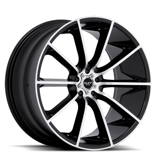 Gloss Black w/ Machined Face and Pin Stripe Ruff R943B Wheels (Series R943). One Piece Aluminum.