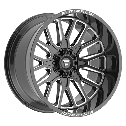 Gloss Black Milled Fittipaldi Offroad FA18 Wheel (Series FA18BM). One Piece Aluminum.