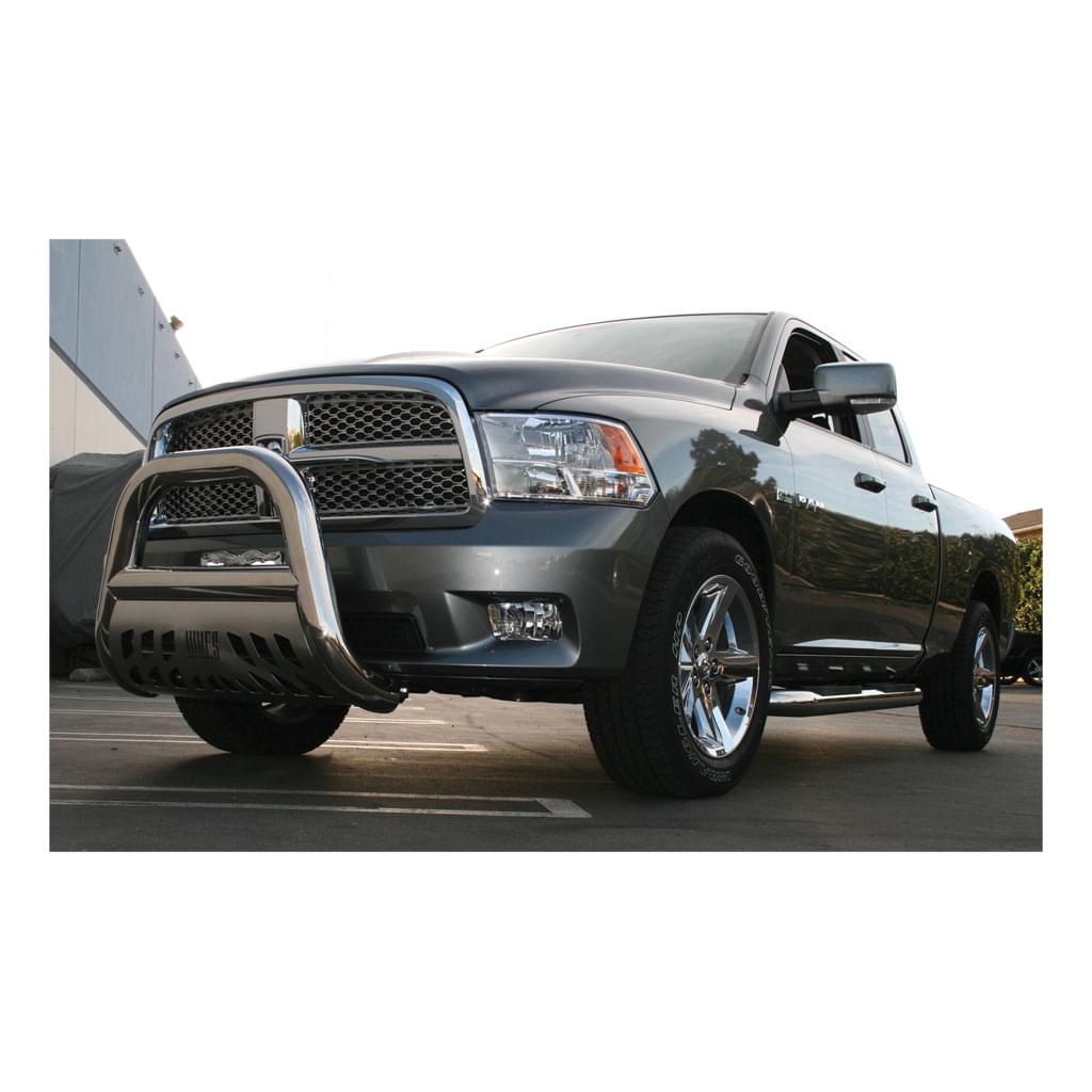 The stainless steel plate protects the front end and underside of the truck and can be removed for a custom look.
