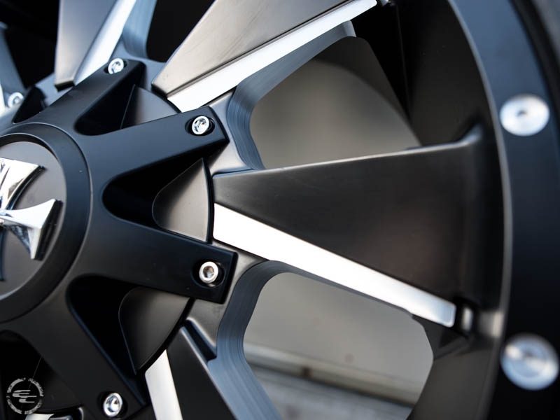 Satin Black W/ Milled Spokes Cali Offroad Distorted Wheel (Series 9106SB). One Piece Aluminum. Open Lugs.