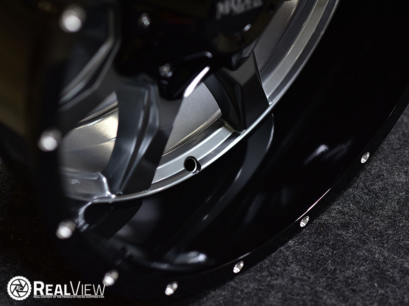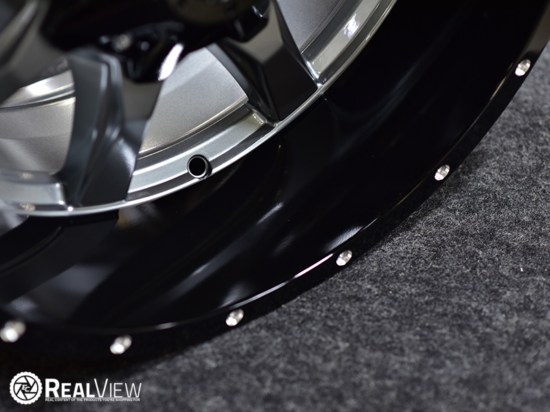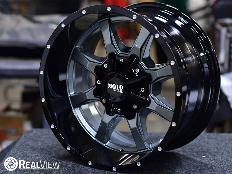Gloss Gray Center W/ Gloss Black Lip Moto Motel MO970 (Series MO970G) Wheels. One Piece Aluminum. Open Lugs.
