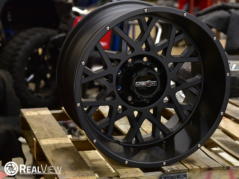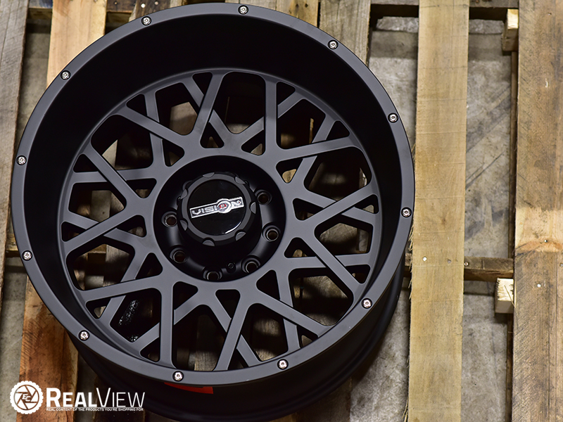 Anthracite W/ Satin Black Lip & Chrome Bolts Vision Offroad Rocker Wheel (Series 412ABL). One Piece Aluminum. Closed Lugs.