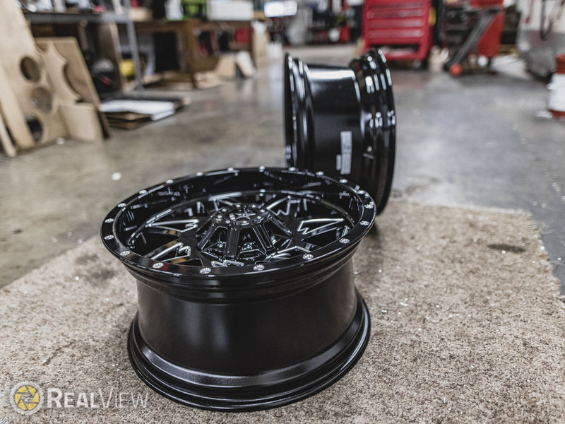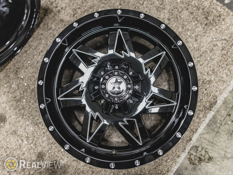 Gloss Black W/ CNC Accents Rolling Big Power Quantom Wheel (Series 71RGB). One Piece Aluminum. Open Lugs.