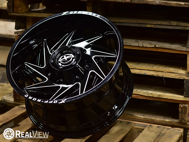Black Milled Window XF Offroad XF203 Wheel (Series 203BM). One Piece Aluminum. Open Lugs.