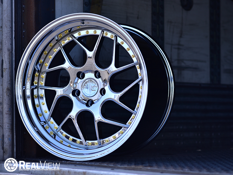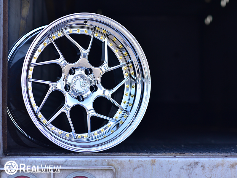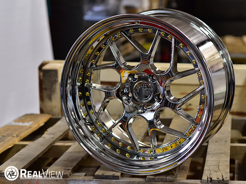Vacuum Chrome W/ Gold Rivets Aodhan Ds01 Wheel (Series Ds01). One Piece Aluminum. Closed Lugs.