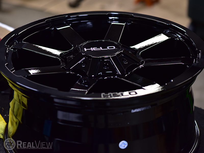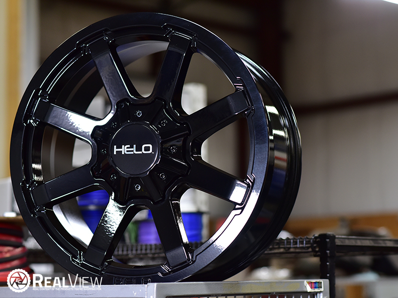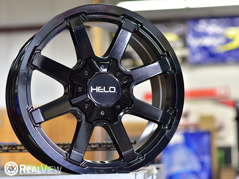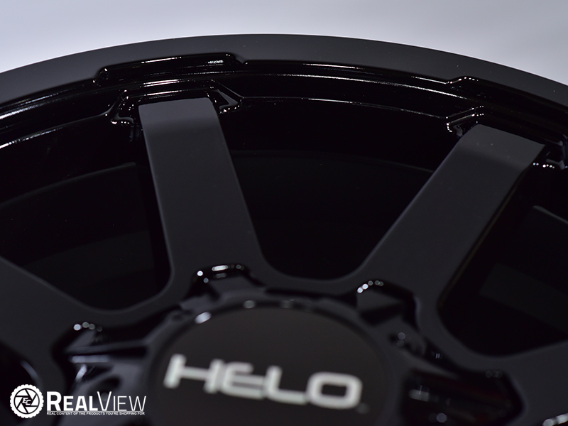 Gloss Black Helo HE909 Black (Series HE909). One Piece Aluminum. Open Lugs.