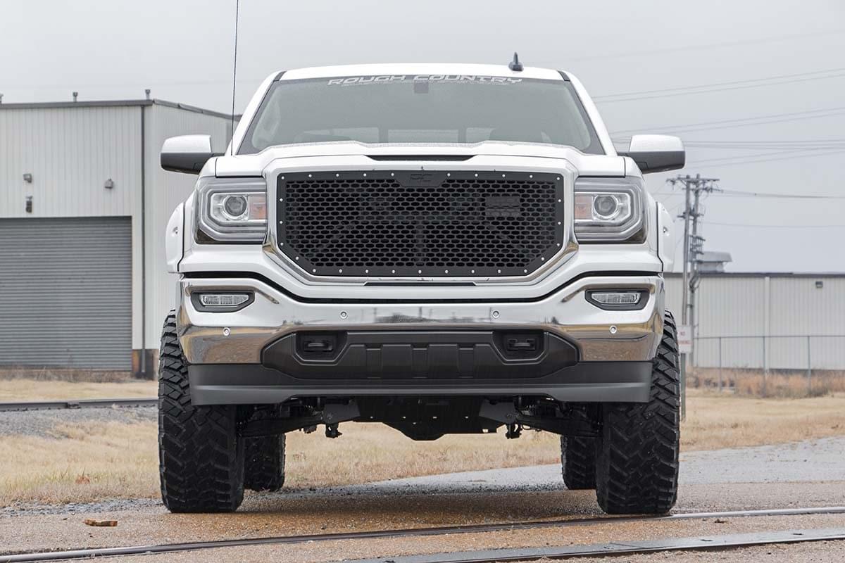Get the look you really want with Rough Countrys 7-inch Suspension Kit Chevy / GMC 1500 Pickups. This massive kit affords your truck the ability to run up to 35-inch tires on factory wheels with our beefy lifted knuckles and is designed with 100% laser-cut materials for the best possible fit on your vehicle! This kit includes a set of front and rear high-clearance cross members featuring the in.RCin. logo and a differential skid-plate. Each kit also comes with a set of durable: fabricated anti-wrap lift blocks that offer a huge boost while helping prevent axle wrap issues.Give your pickup an aggressive: lifted and level stance with incredible ride quality! Our innovative Lifted Knuckle design boosts ride height while keeping all components at the optimum angles for a factory-like ride. This kit includes a set of Rough Countrys premium N3 shocks! These 10-stage variable valving: high-pressure Nitrogen charged shocks offer a fantastic blend of off-road action and smooth highway ride quality. Includes Rough Countrys Lifetime Replacement Warranty.