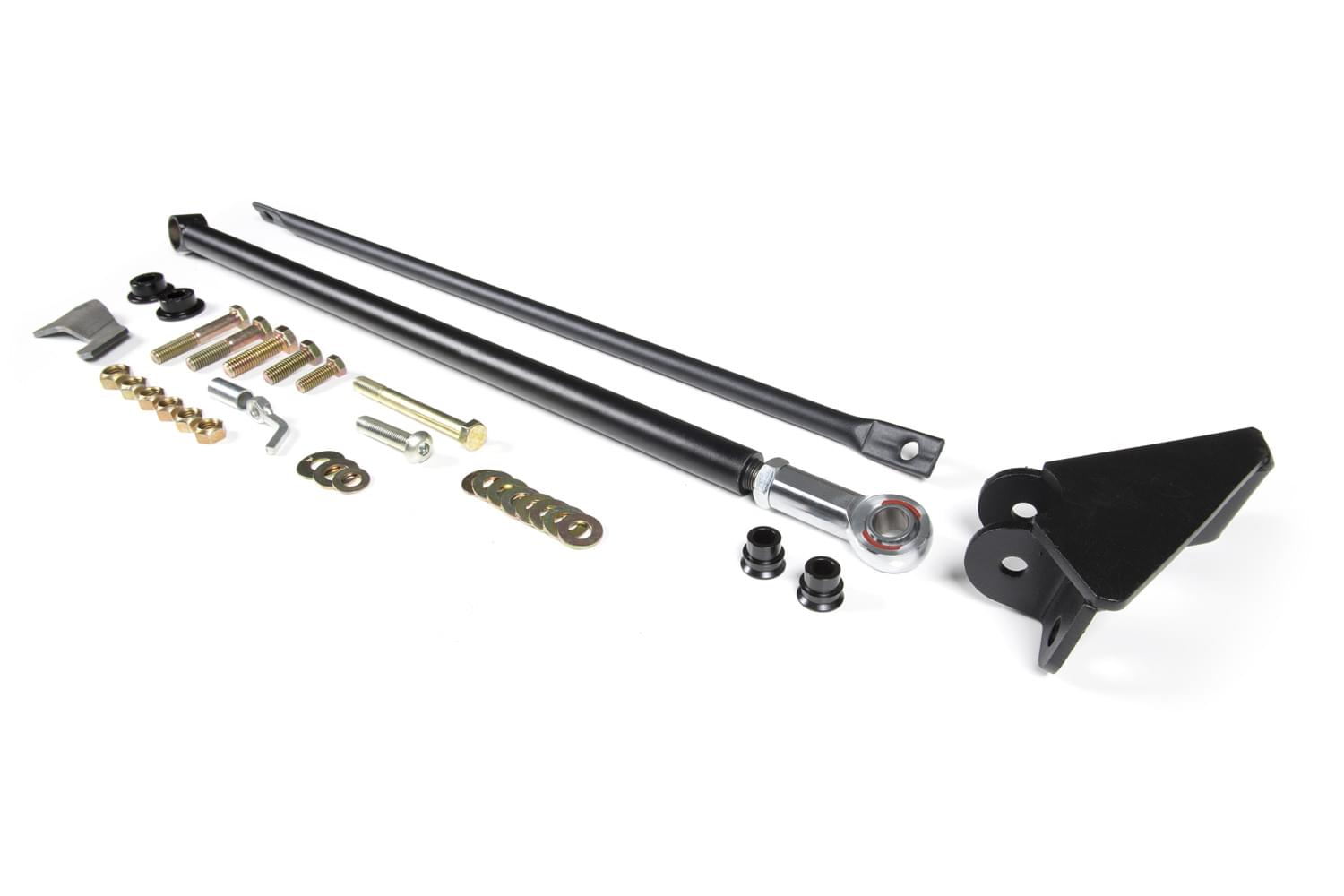 This heavy-duty adjustable track bar mimics the shape of the factory track bar. The bar mounts in the factory locations or works with any aftermarket relocation bracket that was designed for use with the stock track bar. lift 6in-7in