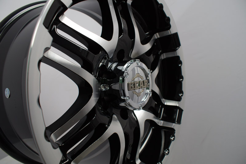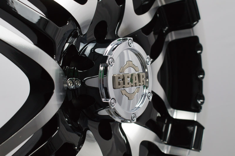 Gloss Black Machined Gear Offroad Double Pump Wheel (Series 713MB). One Piece Aluminum. Closed Lugs.