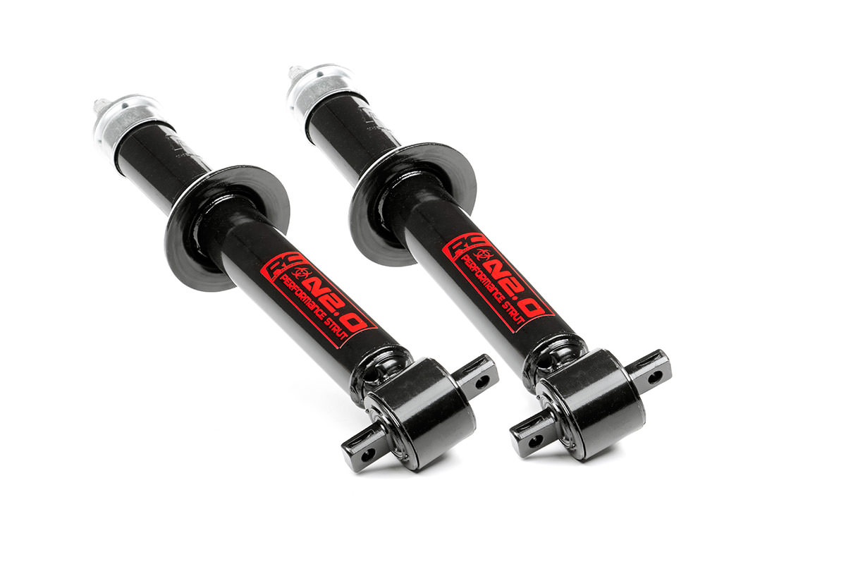 Rough Country?s Performance N2.0 Struts feature a massive bore and chrome plated piston rod with leak-proof piston seal for exceptional durability during off-road use. Each strut is tuned to OEM specs and includes a variable dampening system for outstanding handling and control on all road conditions. These Performance N2.0 Struts offer improved tire contact with the road for increased stability and performance.