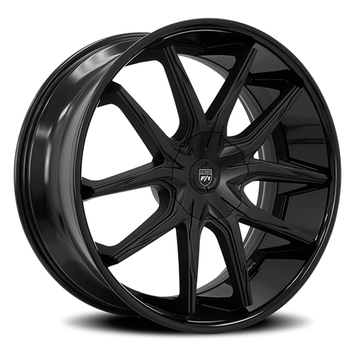 Satin Black w/Gloss Black Lip Lexani R12 Wheel (Series R12SBGB). One Piece Aluminum. Open Lugs.