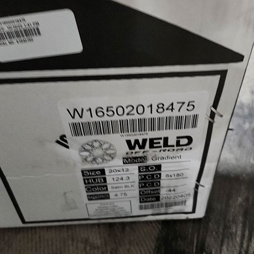 Size : 20x12 Bolt : 8x180 Offset : -44 Hub Size : 124.30 Load : 3700 Backspace : 4.77