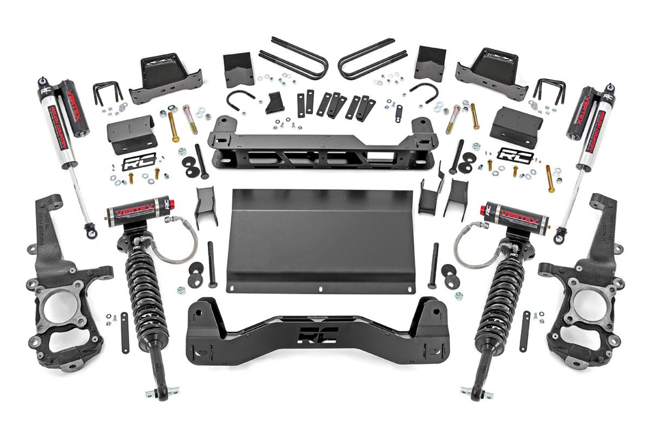 Give your 2021 Ford F-150 an aggressive new look and unparalleled off-road performance with Rough Countrys 6-inch Suspension Lift. This all-inclusive kit features everything needed to take your Ford off the freeway and into the fields.