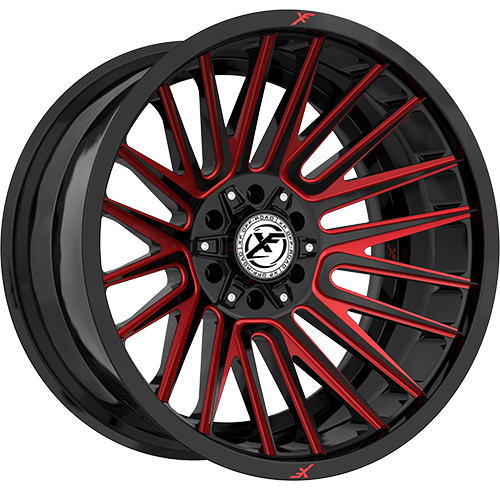 Gloss Black Machined W/ Red Milled Accents XF Offroad XF-234 Wheel (Series XF-234). One Piece Aluminum. Closed Lugs.