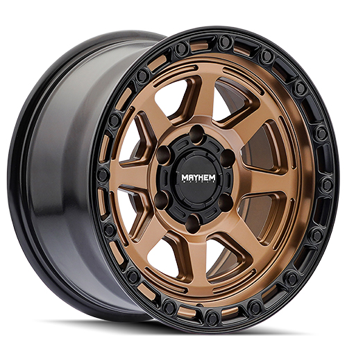 Satin Bronze W/ Black Lip Mayhem Ridgeline Wheel (Series 8306). One Piece Aluminum. Closed Lugs.