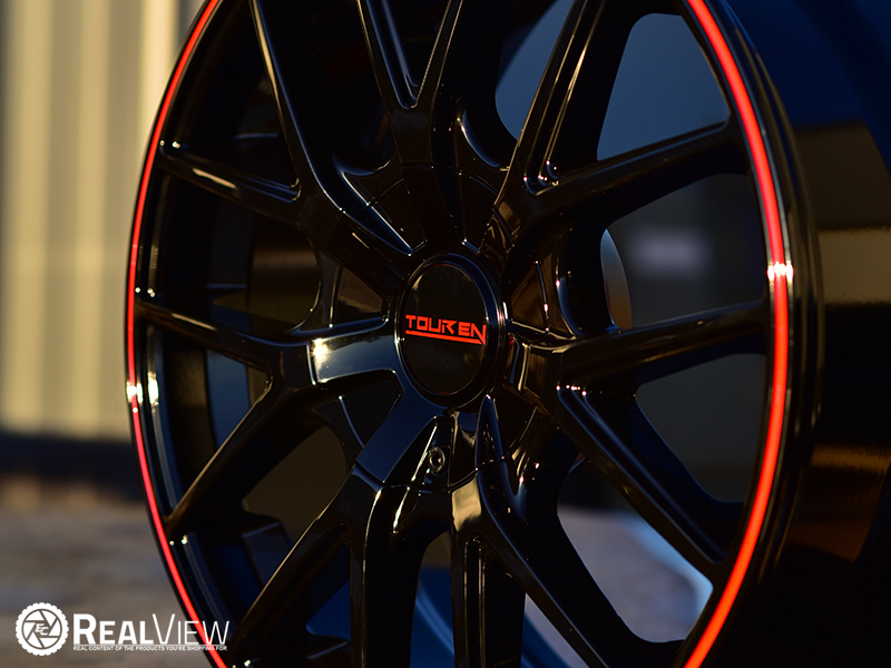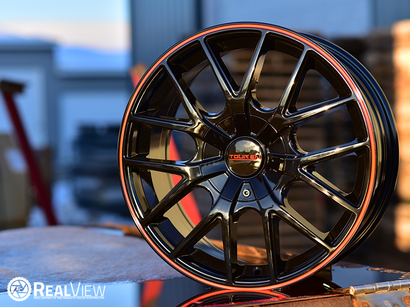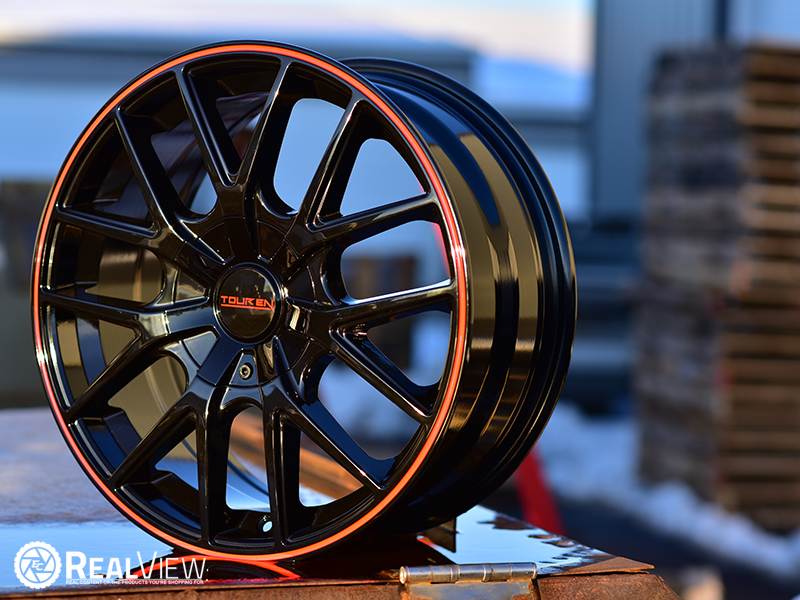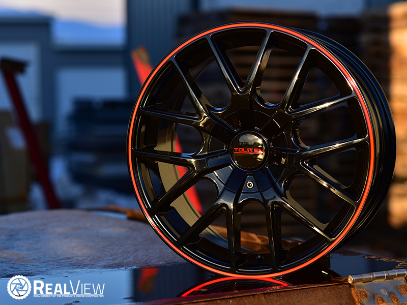 Black W/ Red Ring Touren TR60 Wheel (Series 3260BR). One Piece Aluminum. Open Lugs.