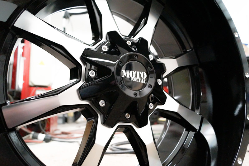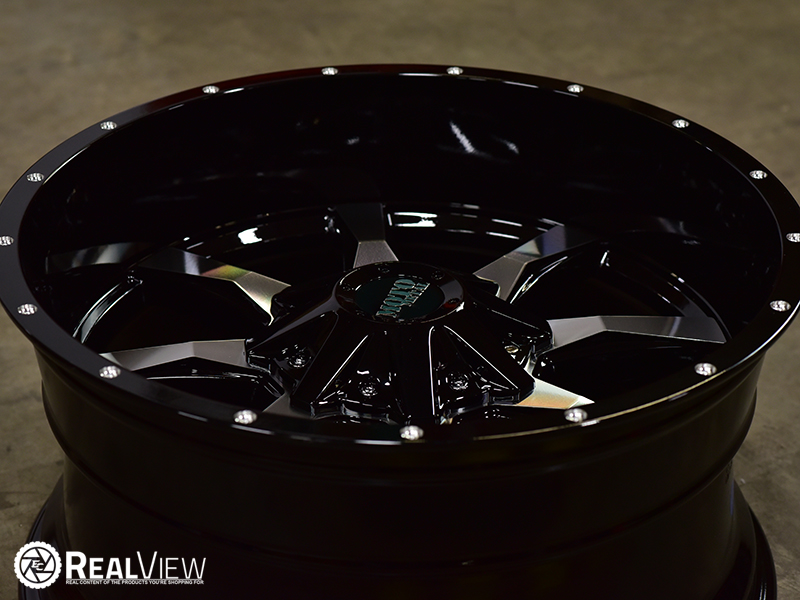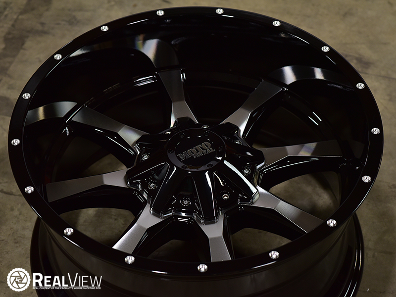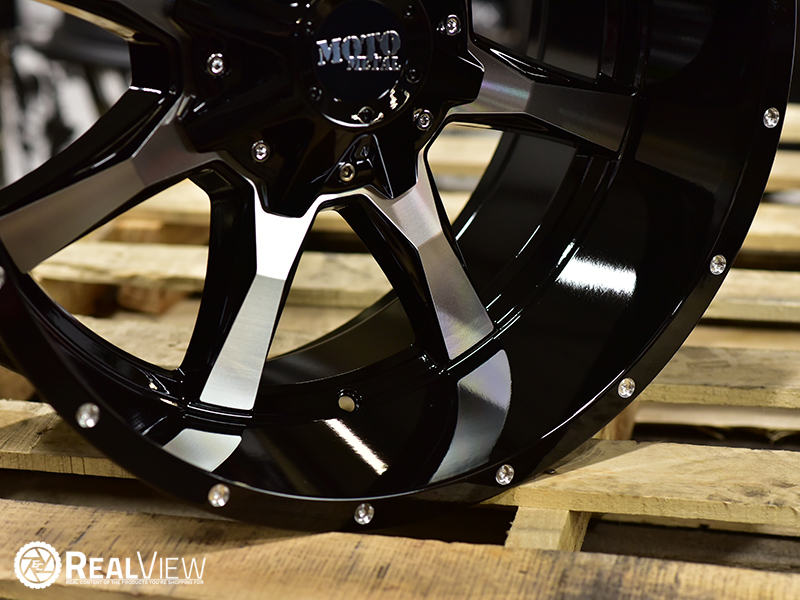 Gloss Black Machined Face Moto Motel MO970 (Series MO970B) Wheels. One Piece Aluminum. Open Lugs.