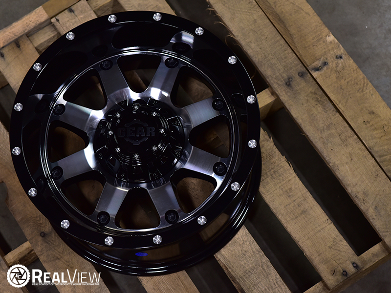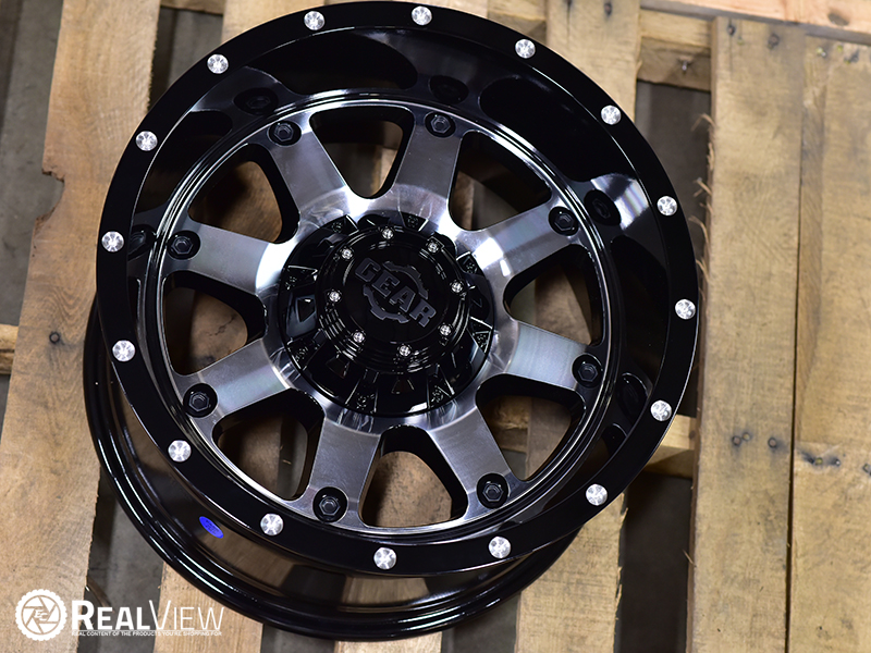Gloss Black W/ Mirror Machined Face & Spot Milled Lip Accents Gear Offroad Big Block Wheel (Series 726M). One Piece Aluminum. Closed Lugs.