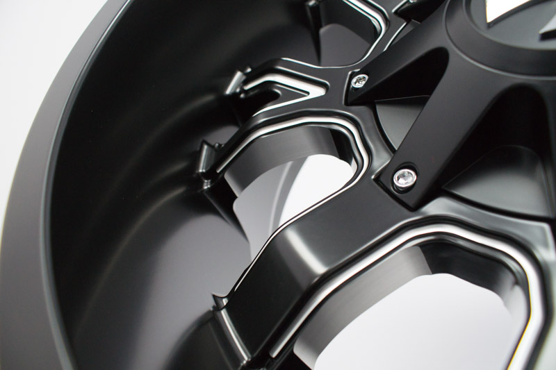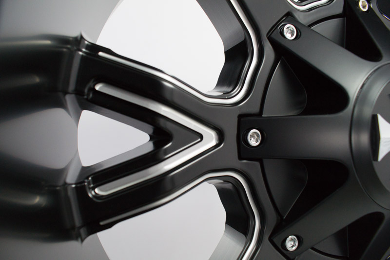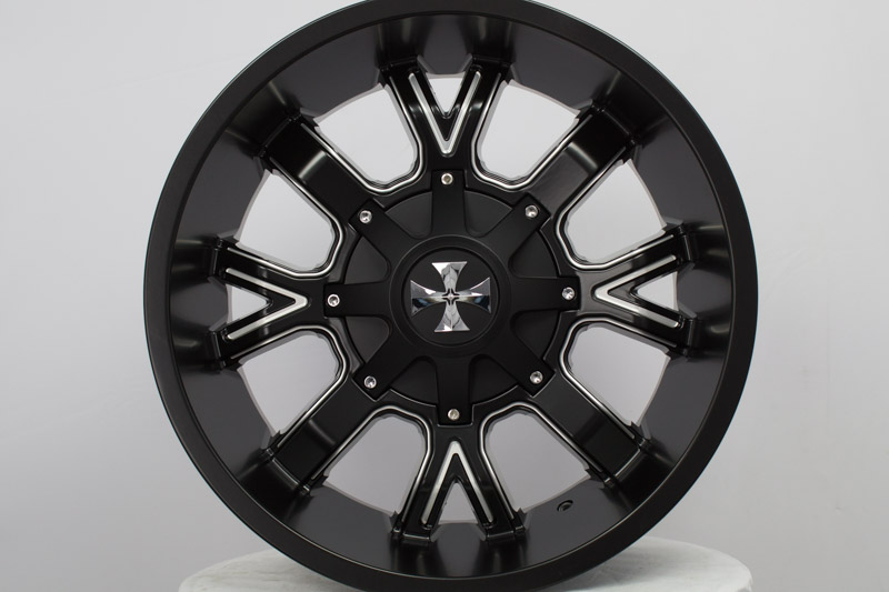 Satin Black W/ Milled Spokes Cali Offroad Dirty Wheel (Series 9104SB). One Piece Aluminum. Open Lugs.