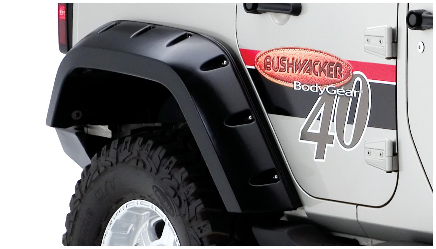 Rear Pair of Jeep Max Coverage Pocket Style Fender Flares for the 07-16 Wrangler JK 4-door Sport Utility.