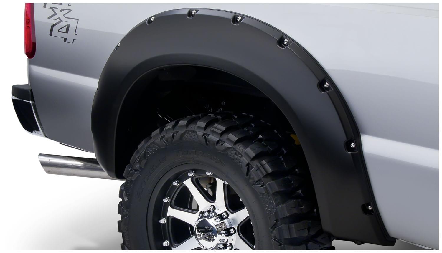 Rear Pair of Ford Pocket Style Fender Flares for the 11-16 F-250 Super Duty Styleside 81.8 in bed, 98.0 in bed, 11-16 F-350 Super Duty Styleside 81.8 in bed, 98.0 in bed. Note: Does not fit dually models.
