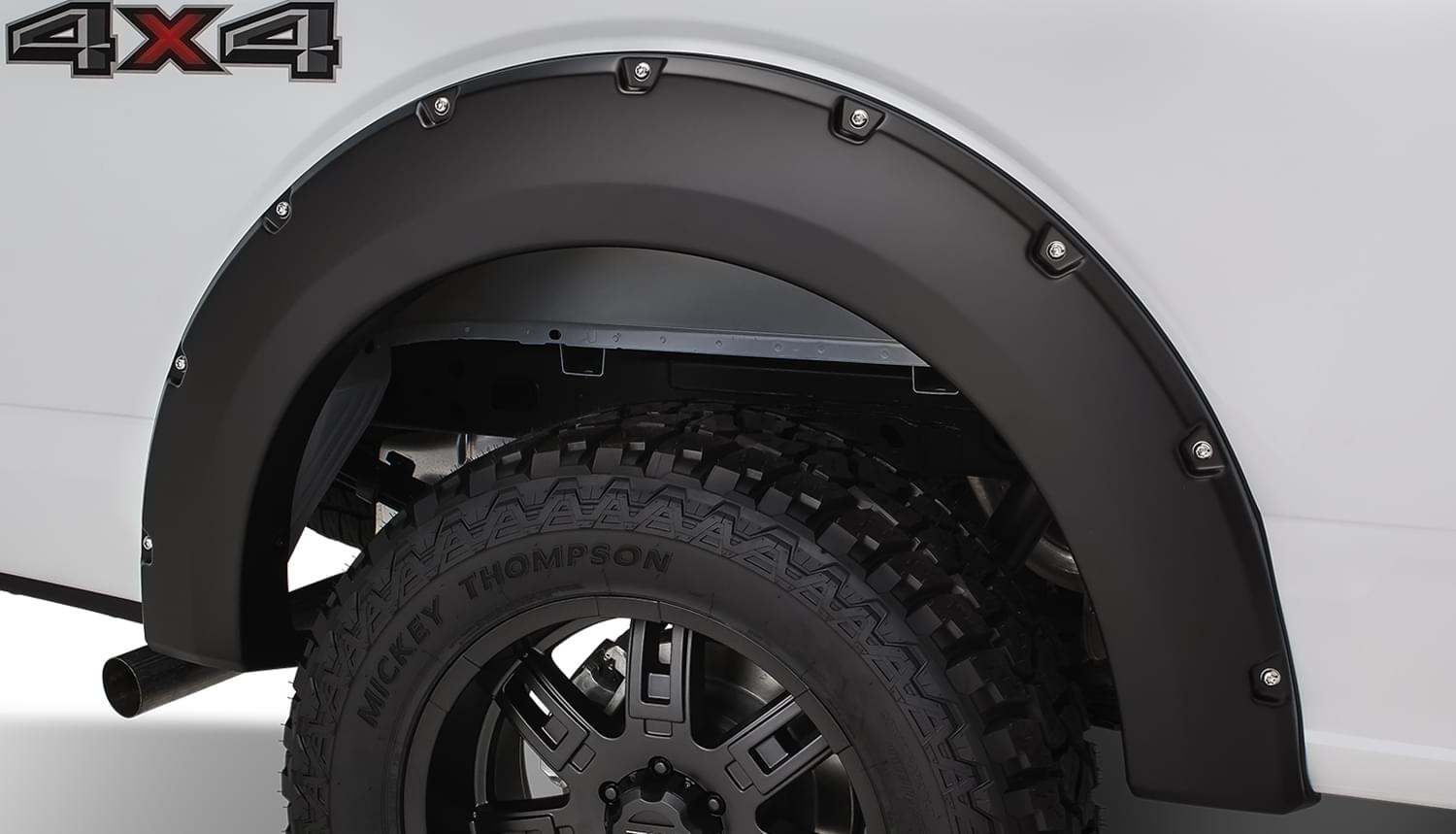 Rear Pair of Ford Pocket Style Fender Flares for the 15-16 F-150 Styleside 67.1 in bed, 78.9 in bed, 97.6 in bed. Note: Not compatible with models installed with Technology Package 68T including lane-keeping sensors on the front fender.