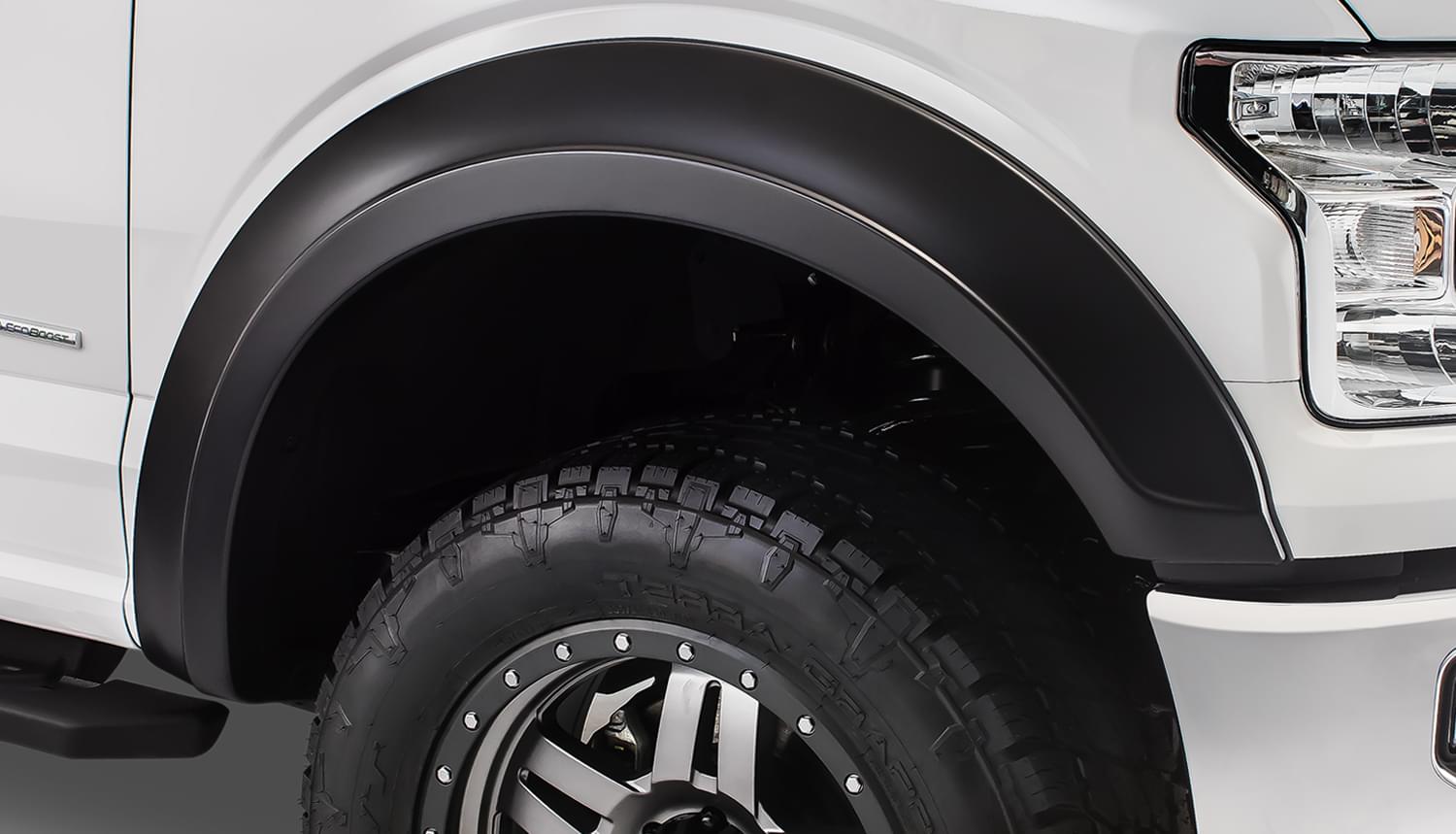Front Pair of Ford Extend-A-Fender Flares for the 15-16 F-150. Note: Not compatible with models installed with Technology Package 68T including lane-keeping sensors on the front fender.