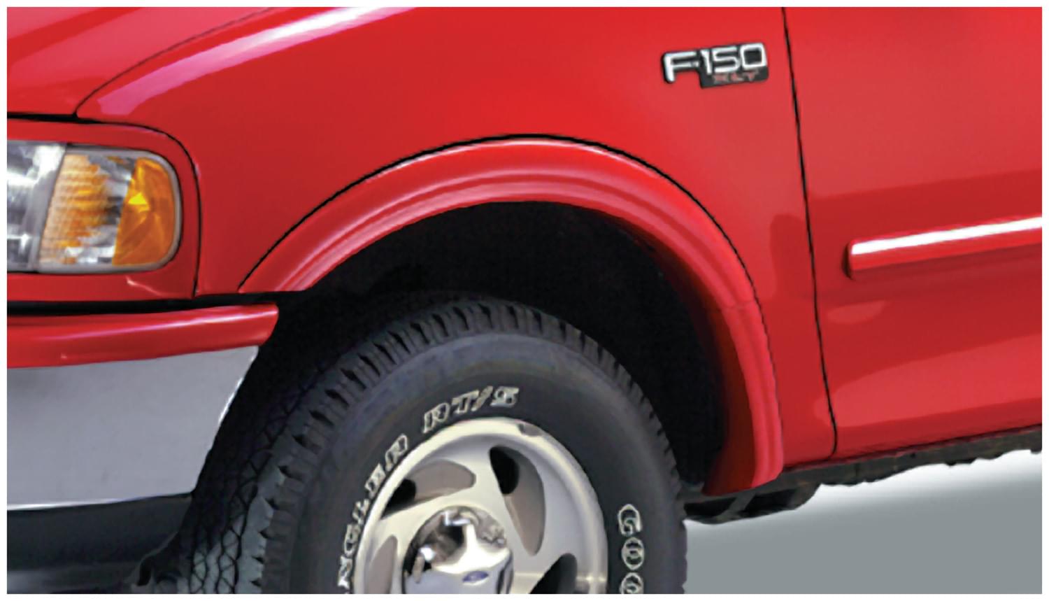 Set of 4 Ford Street Flares Fender Flares for the 97-00 F-150 Styleside 78.0 in bed, 96.0 in bed, 01-03 F-150 Styleside 66.0 in bed, 78.0 in bed, 96.0 in bed, 97-99 F-250 Light Duty Styleside 78.0 in bed, 81.0 in bed, 96.0 in bed, 04 F-150 Heritage Styleside 78.0 in bed, 96.0 in bed.