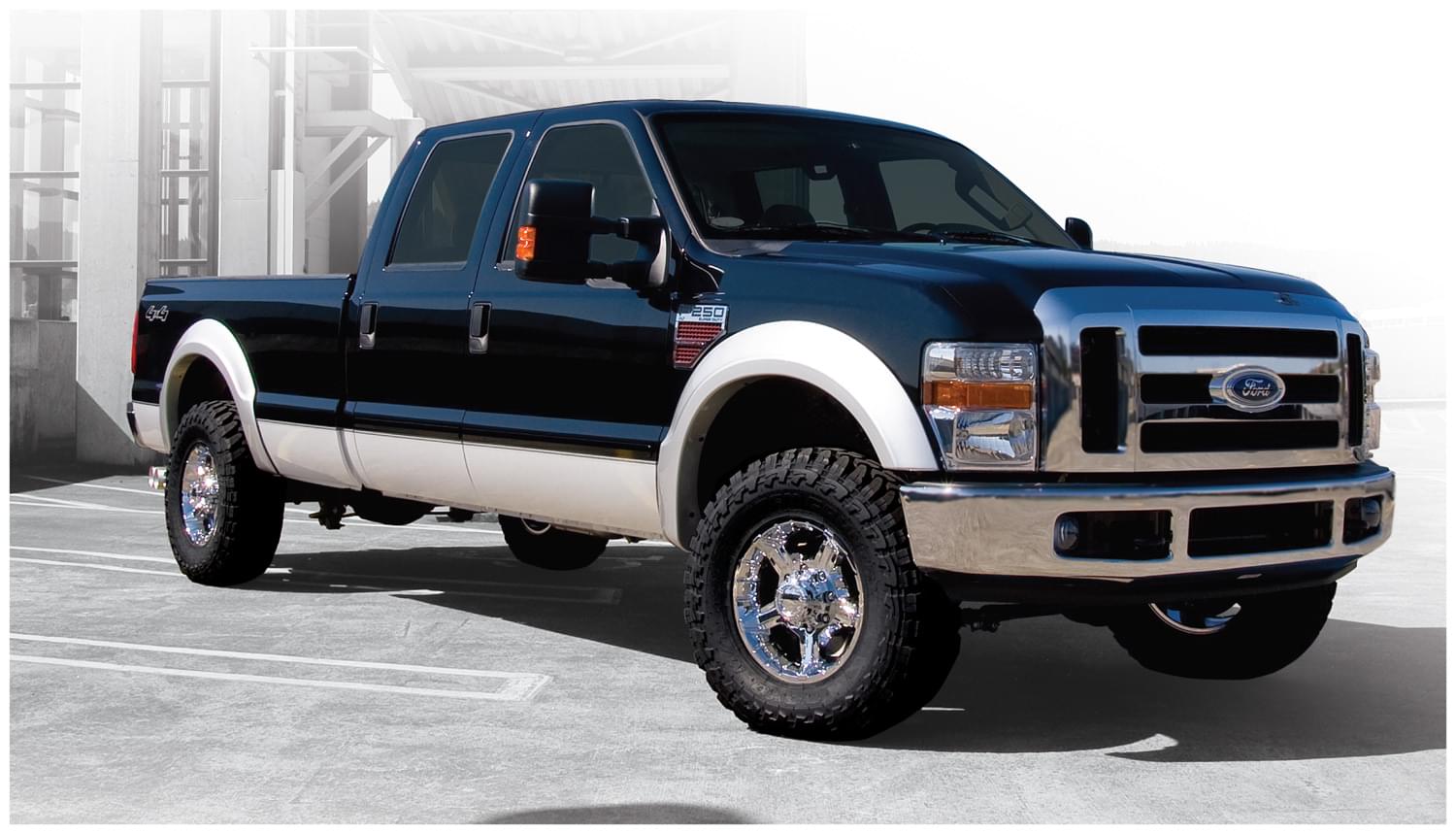 Set of 4 Ford OE Style Fender Flares for the 08-10 F-250 Super Duty Styleside 81.8 in bed, 98.0 in bed, 08-10 F-350 Super Duty Styleside 81.8 in bed, 98.0 in bed. Note: Does not fit dually models.