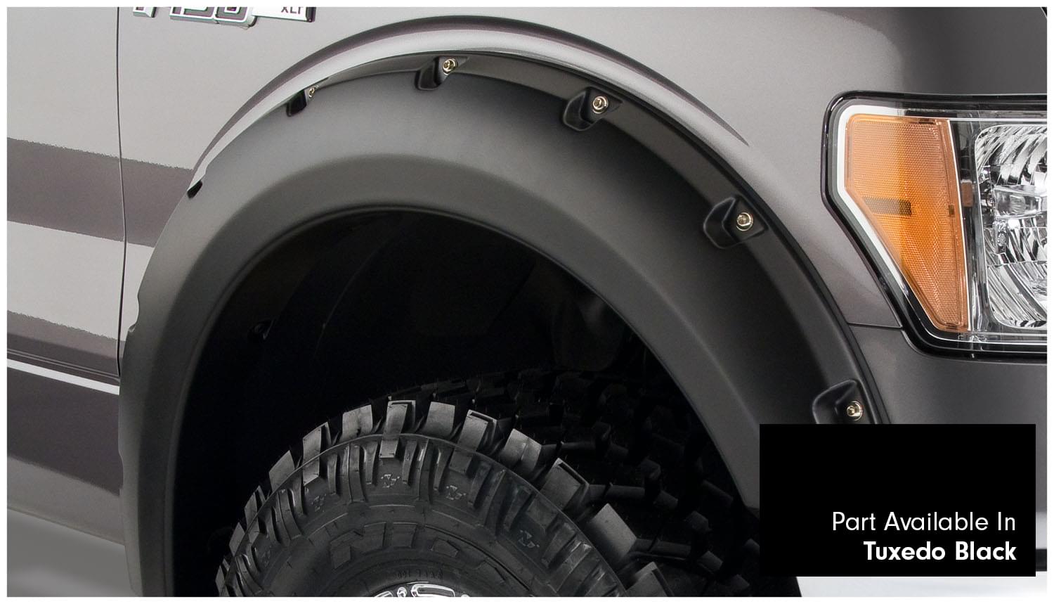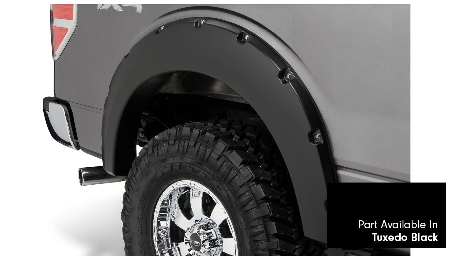 Set of 4 Ford Pocket Style Fender Flares for the 09-14 F-150 Styleside 67.0 in bed, 78.8 in bed, 97.4 in bed, Does not fit Raptor models, Door molding removal on bed and front fender required for fitment on Platinum model.