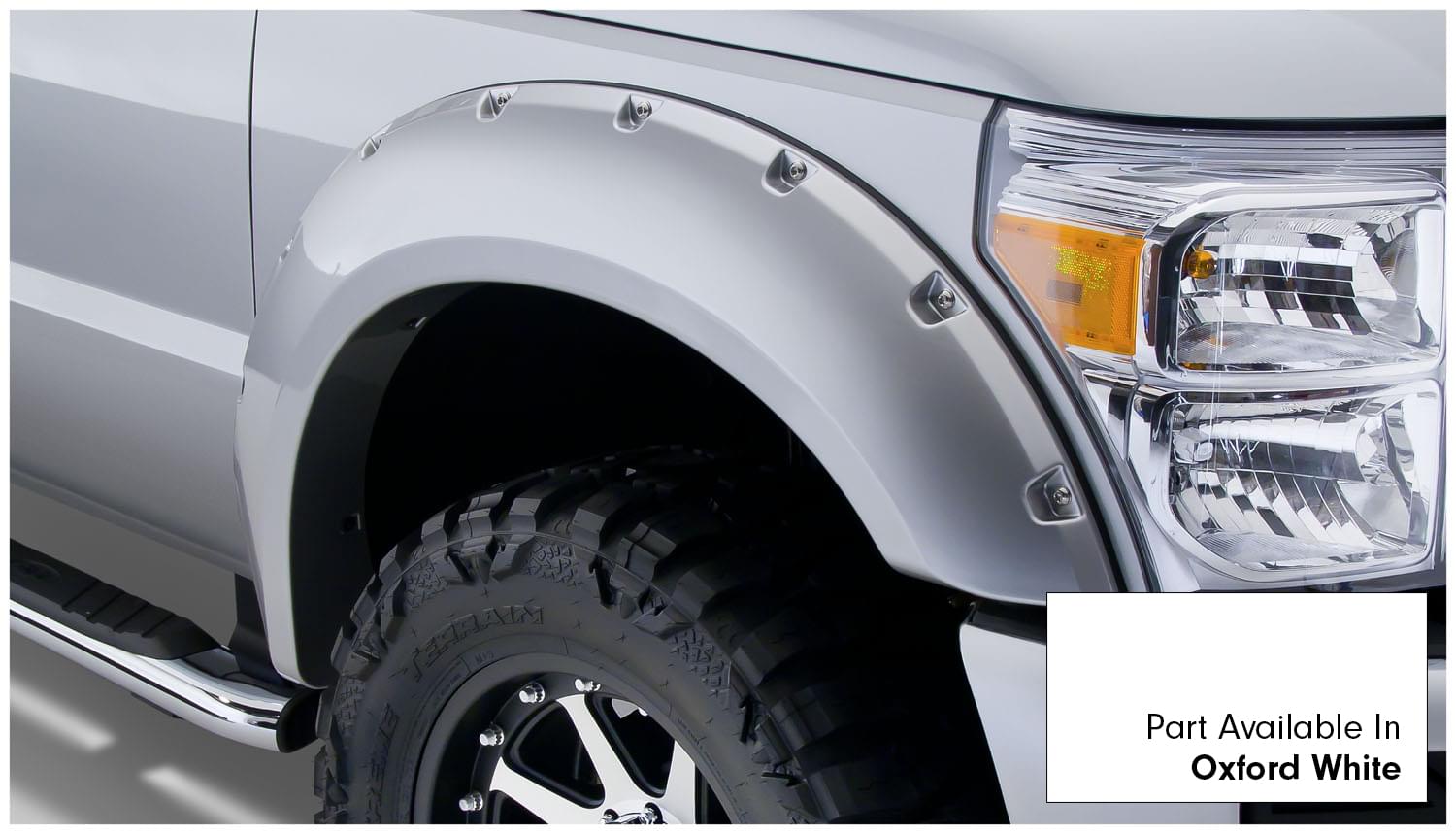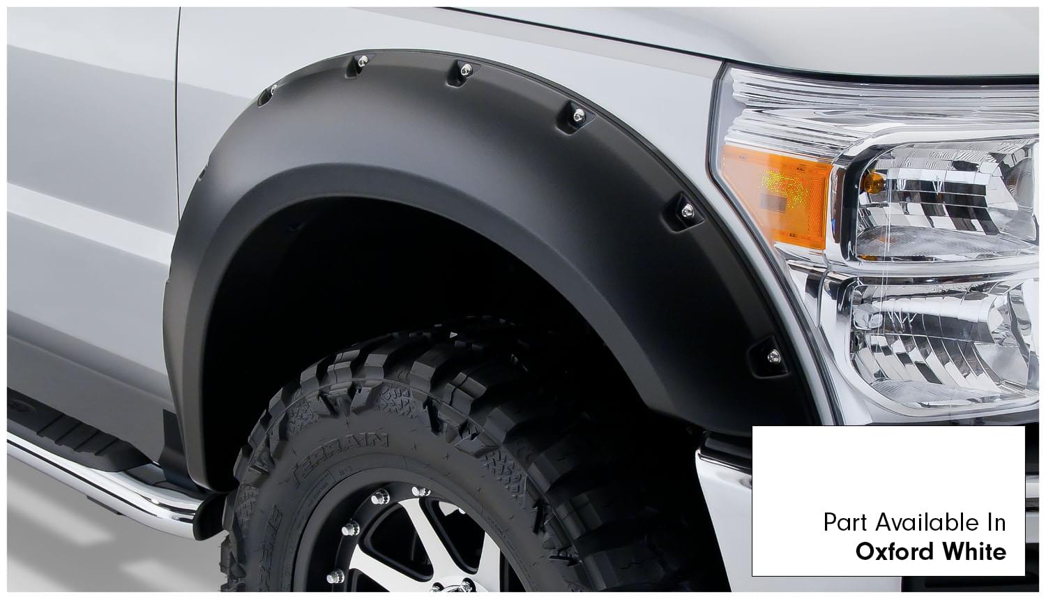 Set of 4 Ford Pocket Style Fender Flares for the 11-16 F-250 Super Duty Styleside 81.8 in bed, 98.0 in bed, 11-16 F-350 Super Duty Styleside 81.8 in bed, 98.0 in bed. Note: Does not fit dually models.