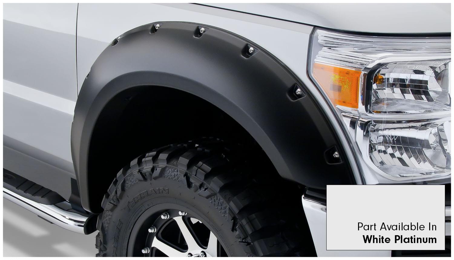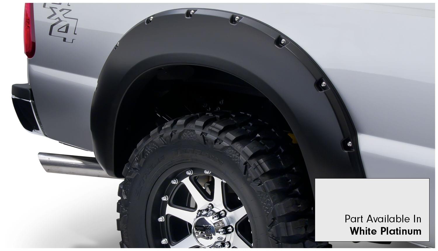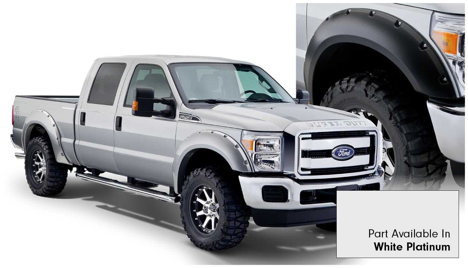 Set of 4 Ford Pocket Style Fender Flares for the 11-16 F-250 Super Duty Styleside 81.8 in bed, 98.0 in bed, 11-16 F-350 Super Duty Styleside 81.8 in bed, 98.0 in bed. Note: Does not fit dually models.