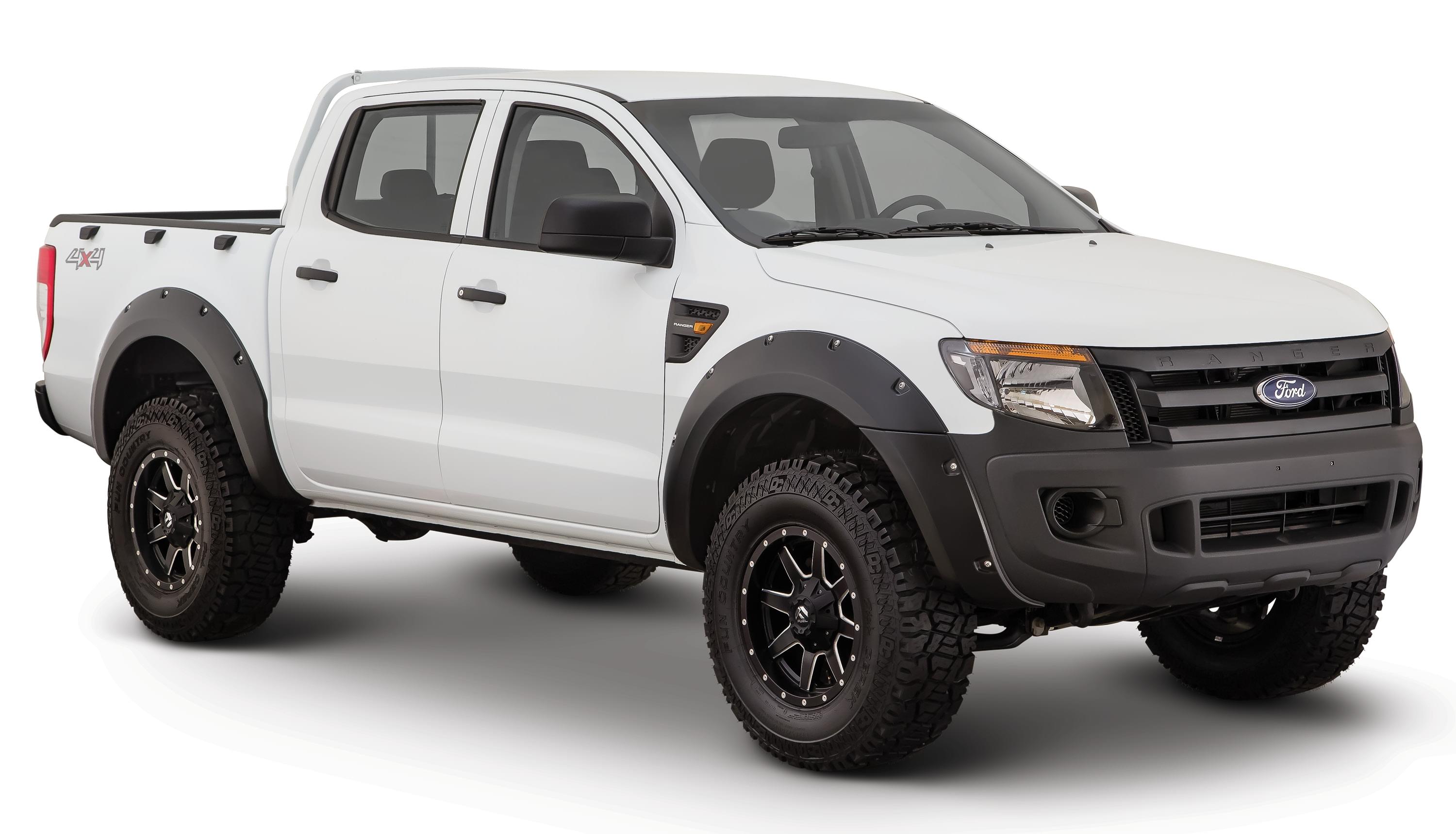 Set of 4 Ford Pocket Style Fender Flares for the 2011-2015 Ford Ranger T6 in 60 in. and 61 in. Bed Lengths. Note: Factory mudflap removal required. Part # 20934-02.