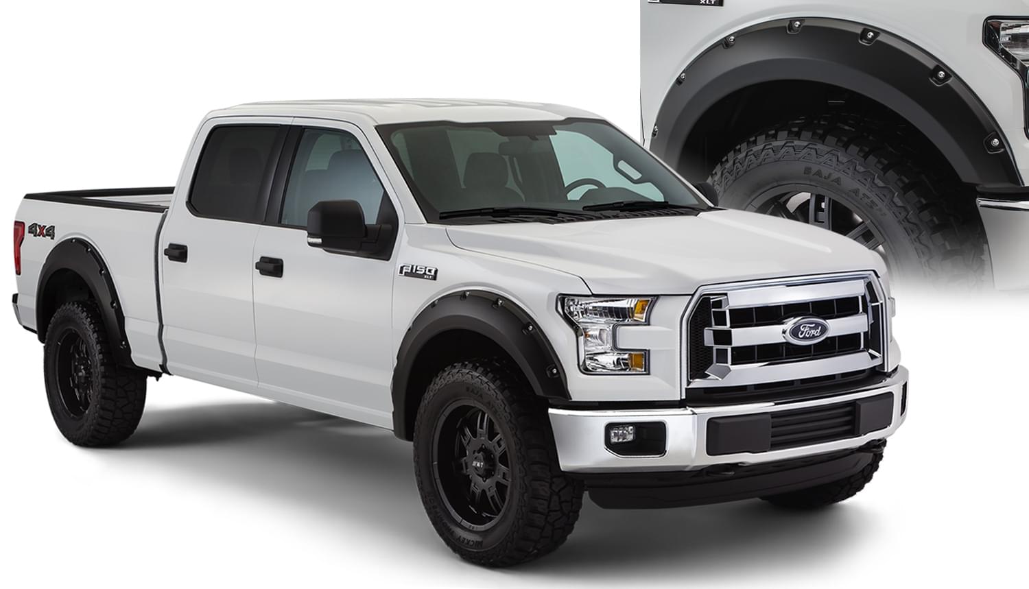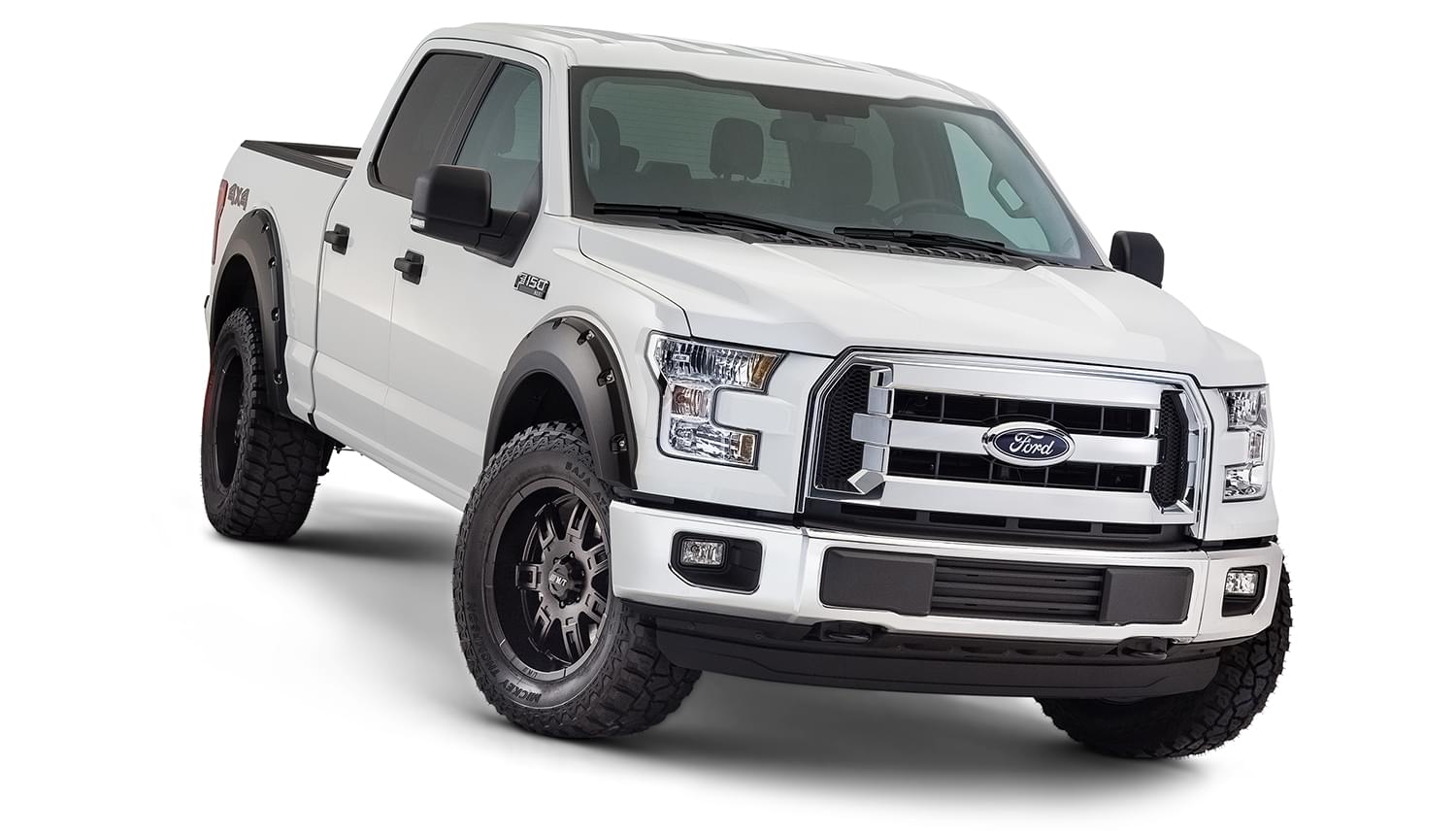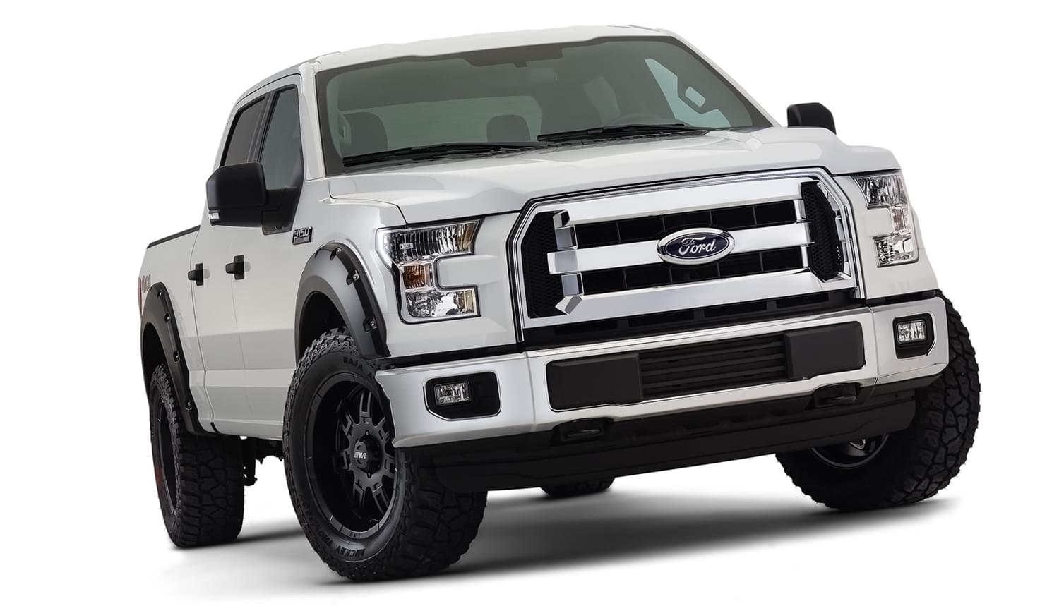 Set of 4 Ford Pocket Style Fender Flares for the 15-16 F-150 Styleside 67.1 in bed, 78.9 in bed, 97.6 in bed. Note: Not compatible with models installed with Technology Package 68T including lane-keeping sensors on the front fender.