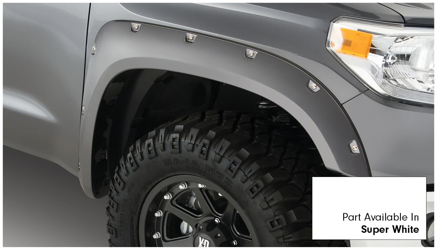 Set of 4 Toyota Pocket Style Fender Flares for the 14-16 Toyota Tundra in 66.7 in., 78.7 in. and 97.6 in. Bed Lengths. Note: Factory Mudflap removal required for correct fitment.