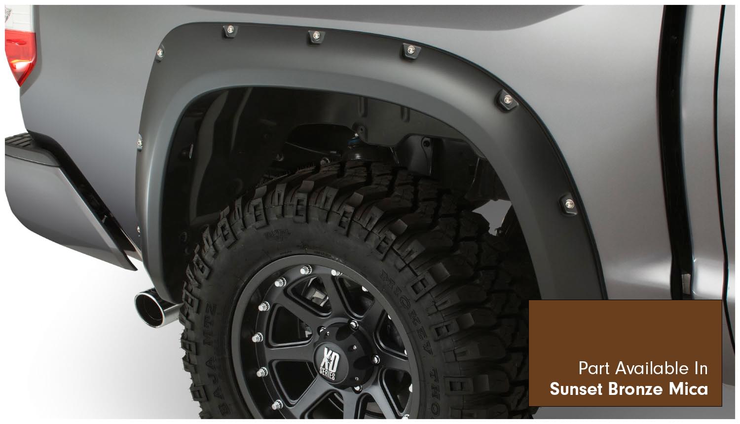 Set of 4 Toyota Pocket Style Fender Flares for the 14-16 Toyota Tundra in 66.7 in., 78.7 in. and 97.6 in. Bed Lengths. Note: Factory Mudflap removal required for correct fitment.