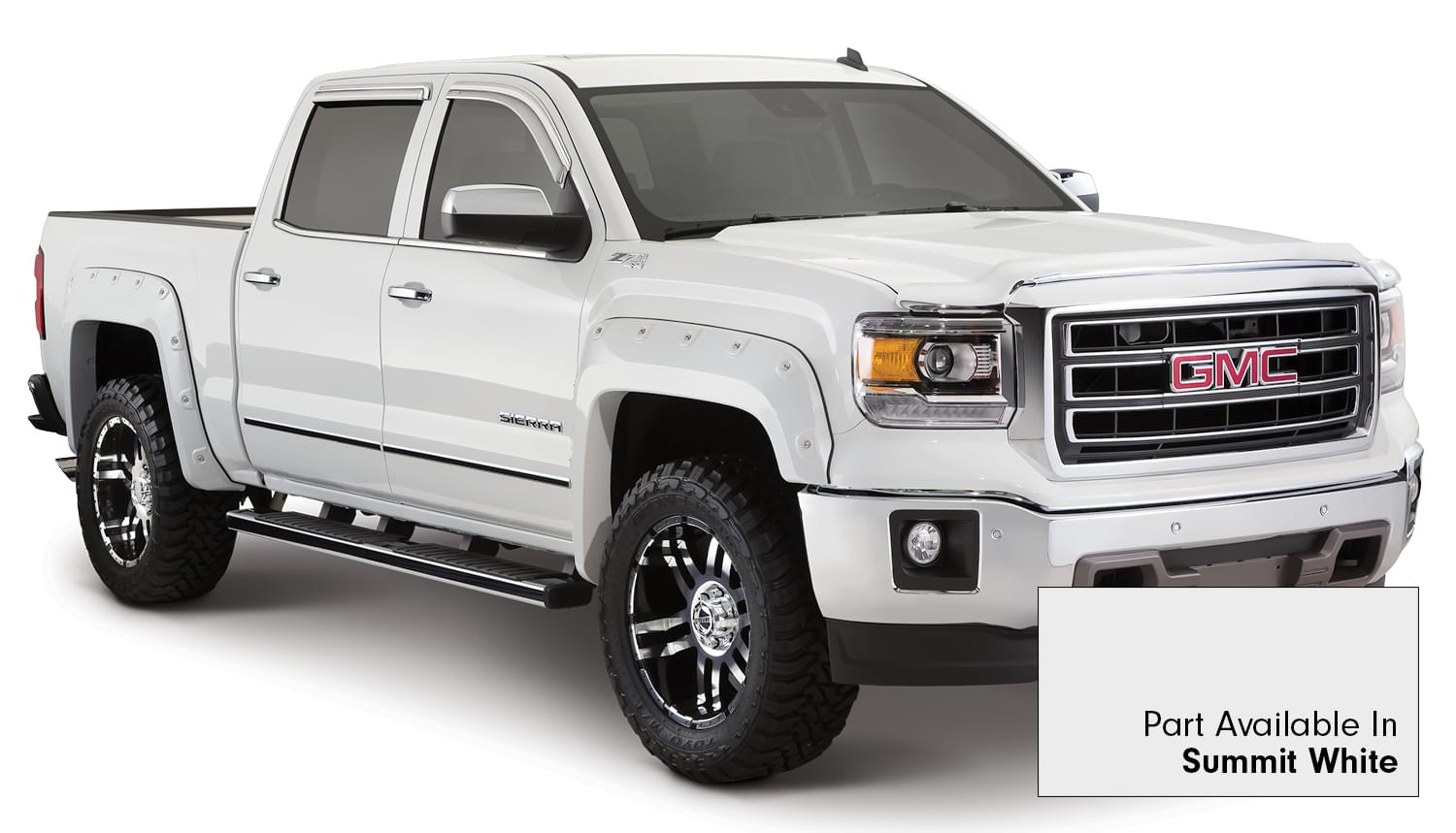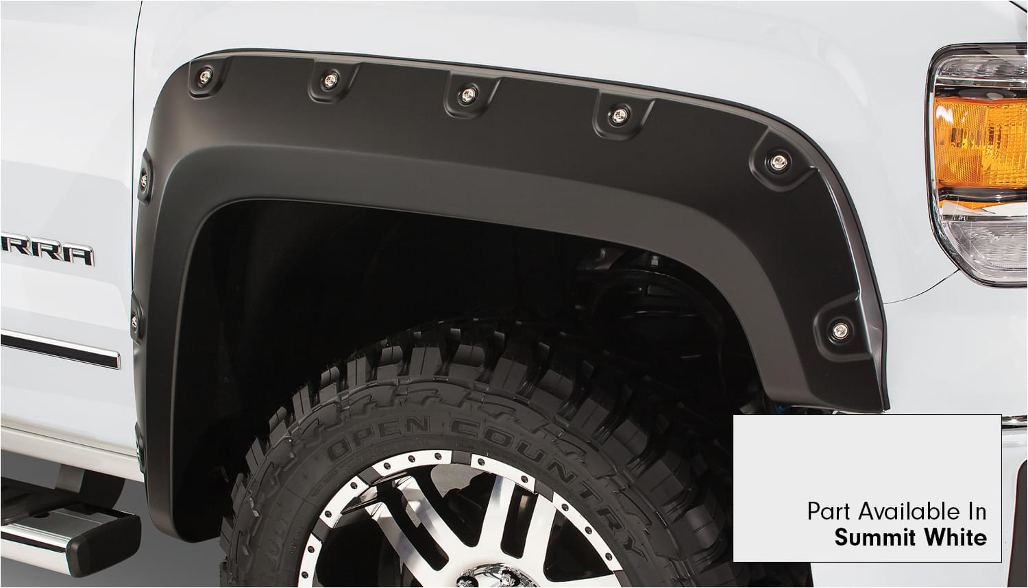 Set of 4 GMC Boss Pocket Style Fender Flares for the 14-15 Sierra 1500 69.3 in bed, 78.8 in bed and 97.6 in bed.