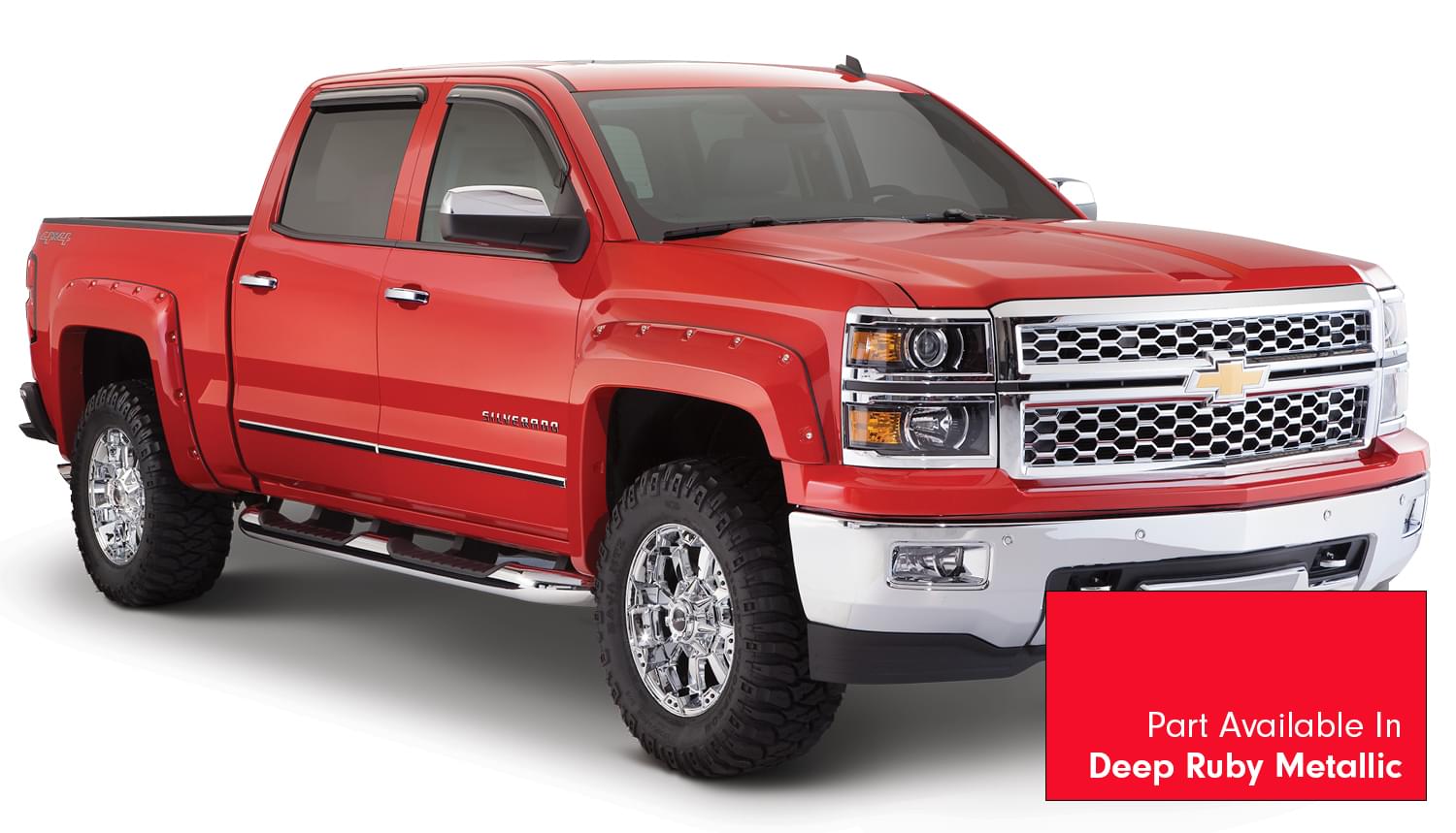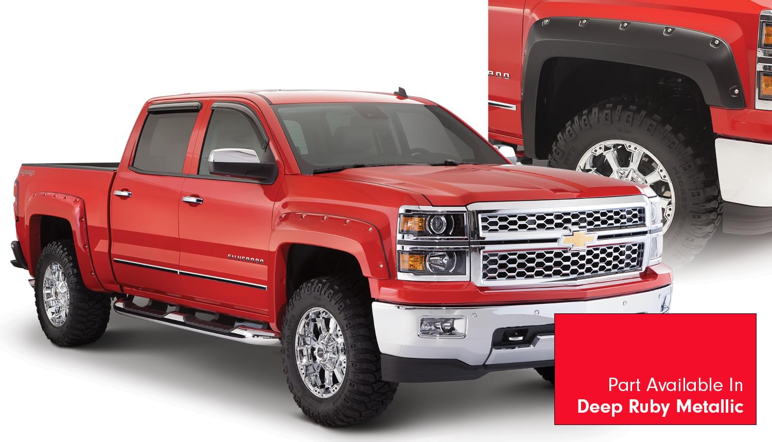 Set of 4 Chevrolet Pocket Style Fender Flares for the 14-15 Chevrolet Silverado 1500 Fleetside 69.3 in bed.