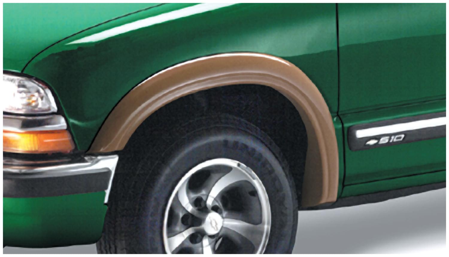 Set of 4 Chevrolet Street Flares Fender Flares for the 95-05 Blazer Does Not Fit ZR2 Models, 94-03 S10 Fleetside 73.1 in bed, 89.0 in bed. Note: Does Not Fit ZR2 Models.