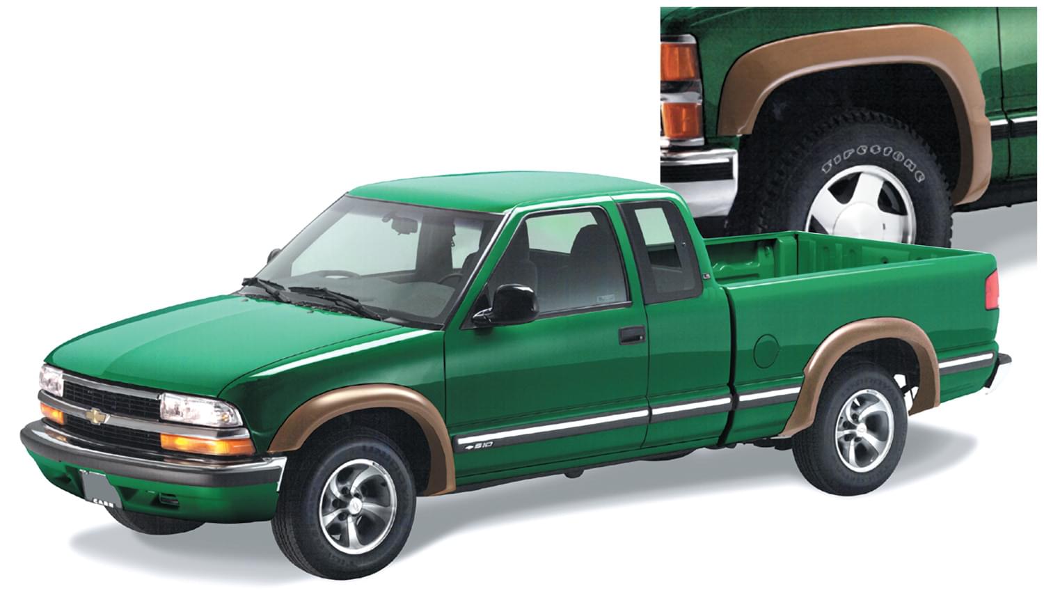 Set of 4 Chevrolet Extend-A-Fender Flares for the 95-05 Blazer Does Not Fit ZR2 Models, 94-03 S10 Fleetside 73.1 in bed, 89.0 in bed. Note: Does Not Fit ZR2 Models.