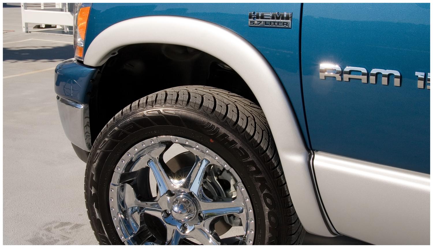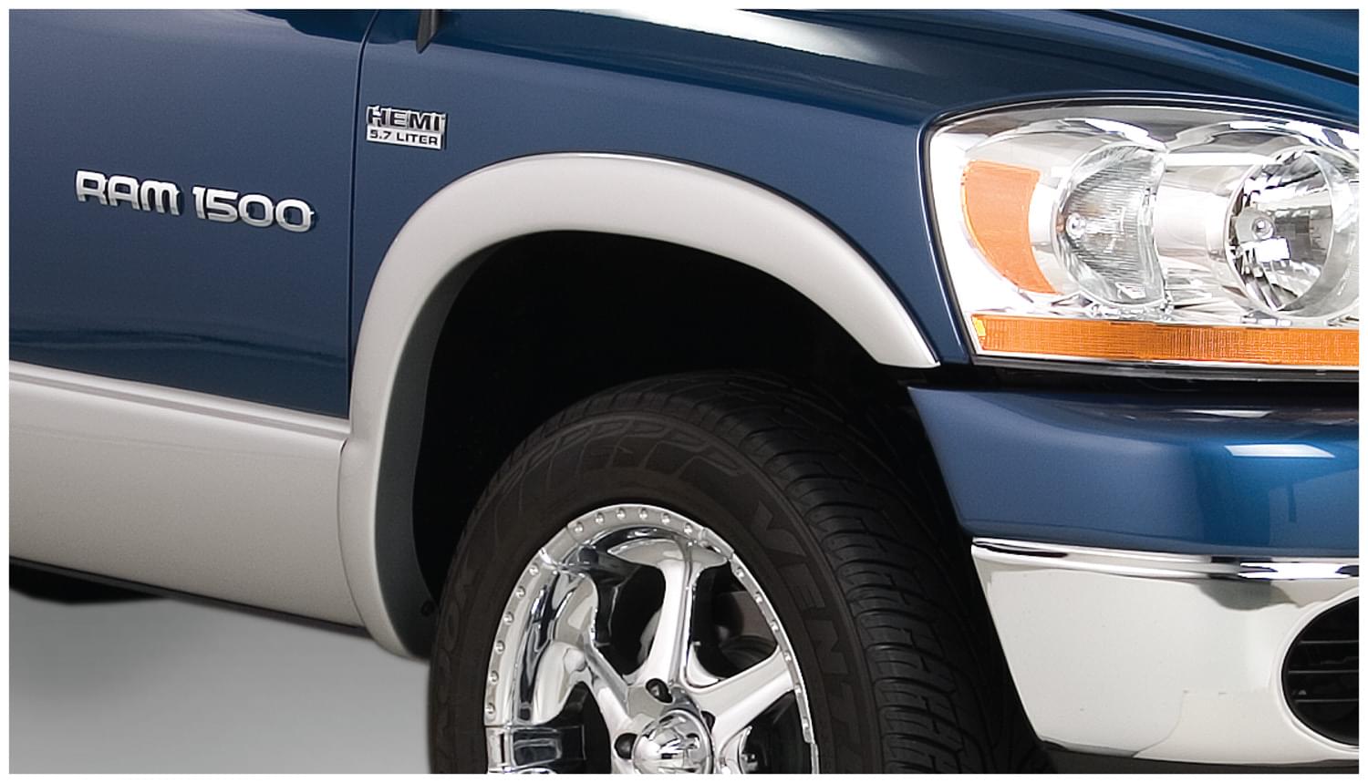 Set of 4 Dodge Street Flares Fender Flares for the 06 RAM 1500 Fleetside 97.9 in bed, 98.3 in bed, 07-08 RAM 1500 Fleetside 98.3 in bed, 06 RAM 2500/3500 Fleetside 97.5 in bed, 97.9 in bed, 98.3 in bed, 07 RAM 2500/3500 Fleetside 97.9 in bed, 98.3 in bed, 08-09 RAM 2500/3500 Fleetside 98.3 in bed. Note: Does not fit dually models.