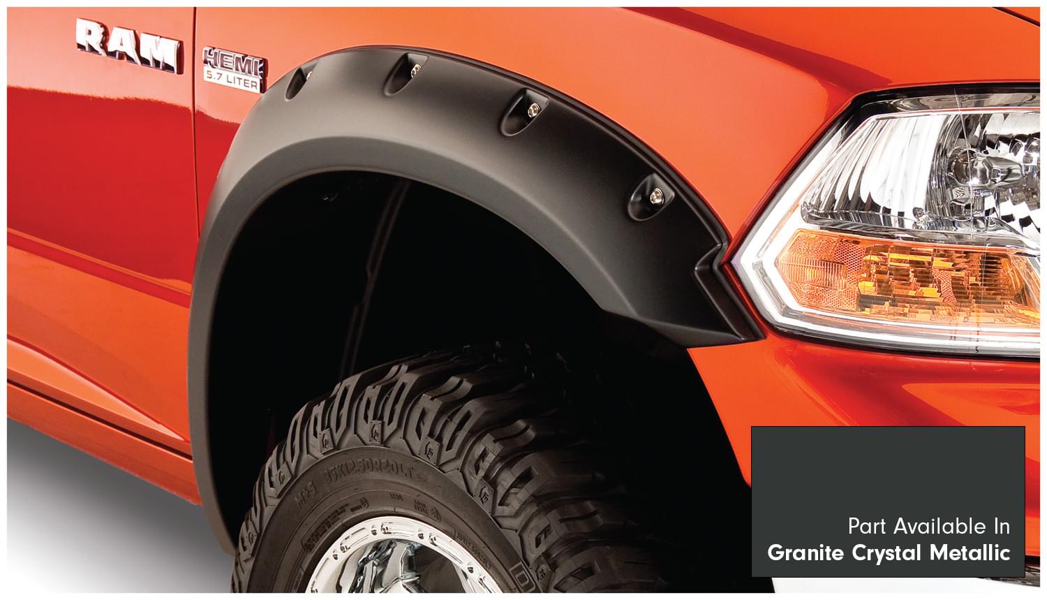Set of 4 Dodge / RAM Pocket Style Fender Flares for the 09-10 RAM 1500 Fleetside 67.4 in bed, 76.3 in bed, 96.3 in bed, Does not fit R/T Models, 11-16 1500 Fleetside 67.4 in bed, 76.3 in bed, 96.3 in bed.