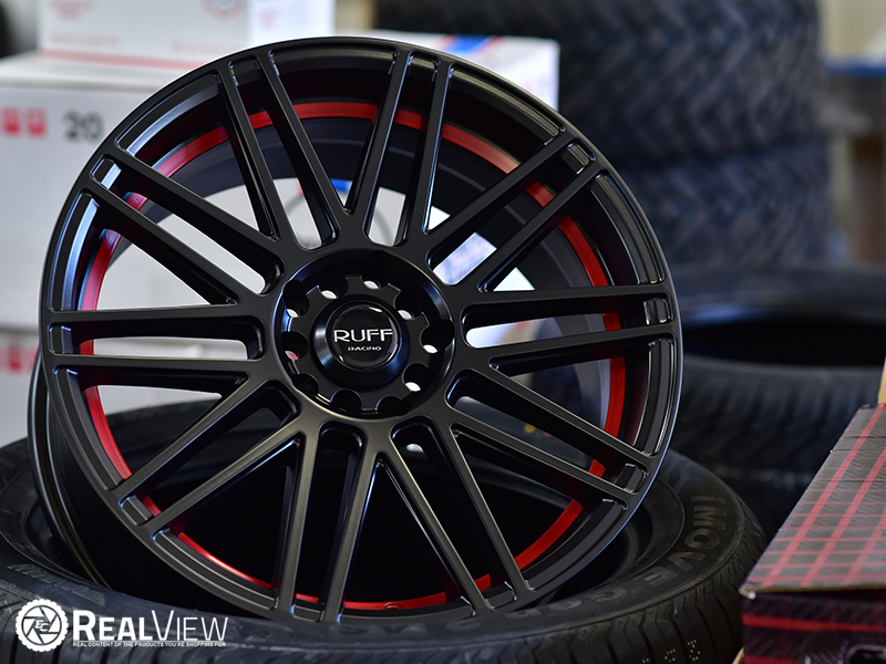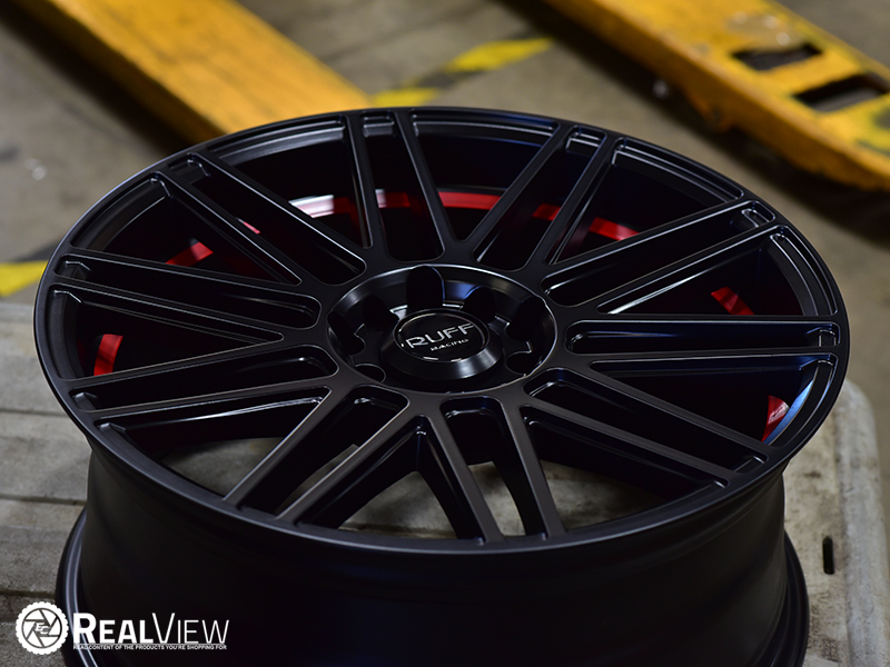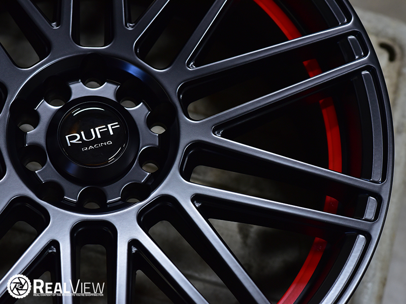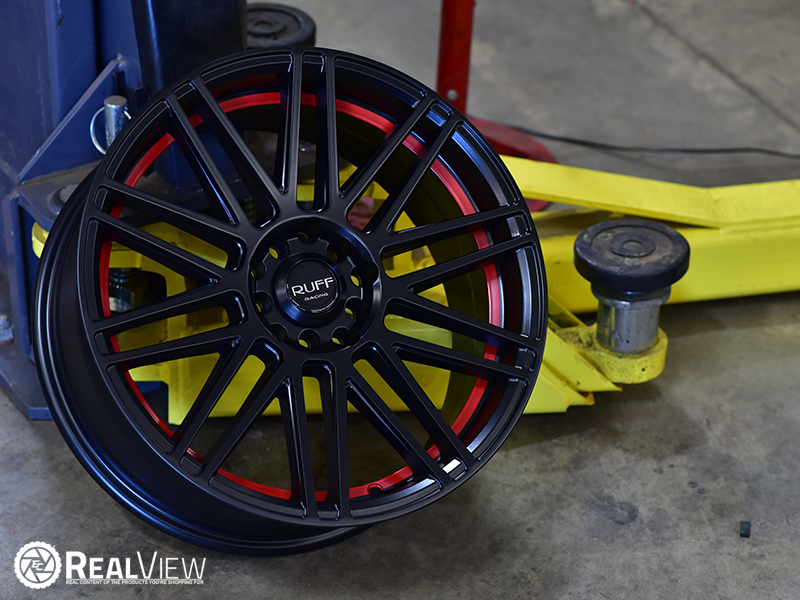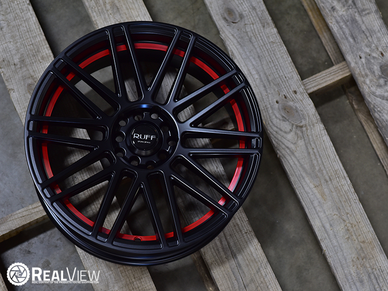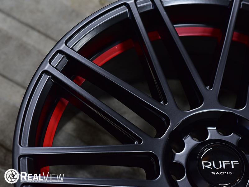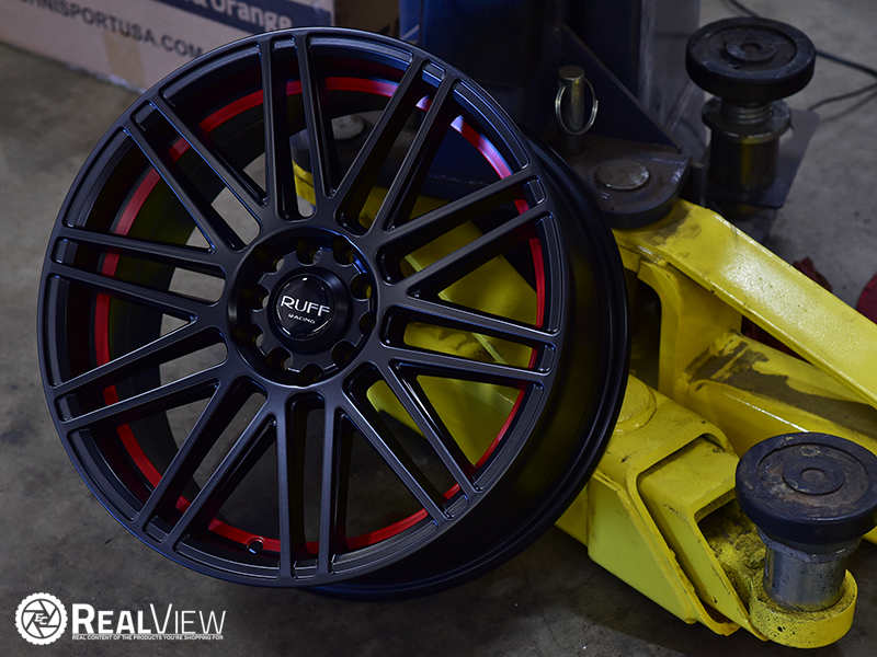 Satin Black W/ Red Undercut Ruff Racing R367 Wheel (Series R367SBR). One Piece Aluminum. Closed Lugs.