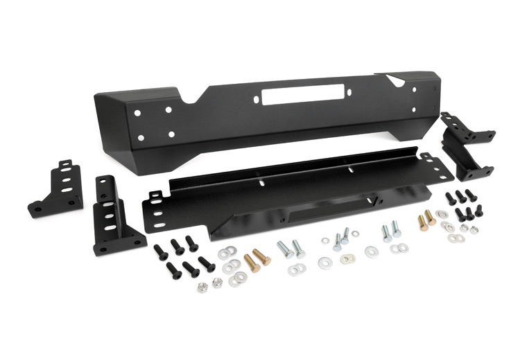 Winch bumper, winch plate, mounting brackets, and grade 8 hardware
