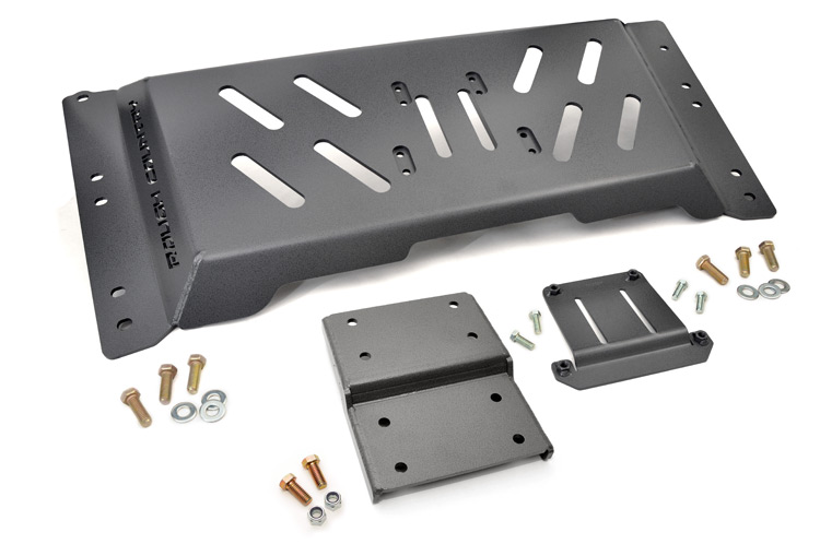Put the shovel to rest with Rough Country`s new High Clearance Skid Plate. Made from heavy-duty quarter inch steel, this super tough belly pan protects the underside of your vehicle from off-road hazards. With its innovative design the skid plate sits snug to the vehicle, avoiding hang-ups your factory plate can`t, and allowing an additional 2-inches of clearance. The pronounced lip traverses rocks and dirt with ease. A powdercoat helps ward off the elements as well as it gives the vehicle a killer look.